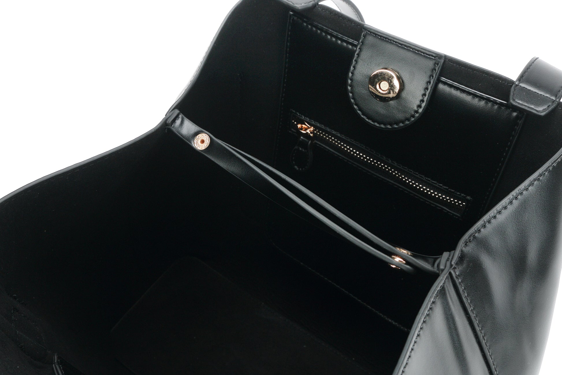 Experience everyday elegance with our Luxury 2:1 Large Black Tote/Mini Bucket - Sandstone Vegan Leather Handbag. Crafted from recycled water-based buttery soft vegan leather, this handbag is cruelty-free and eco-conscious, GRS and OEKO certified.
