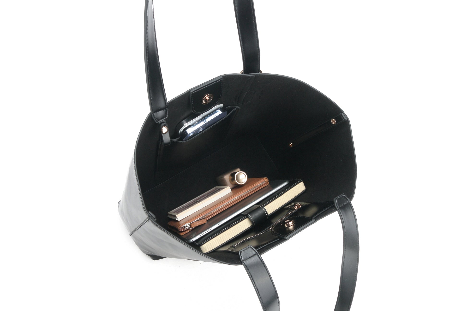 - Side snap buttons to compress the large tote bag or allows option to have a hobo shape look