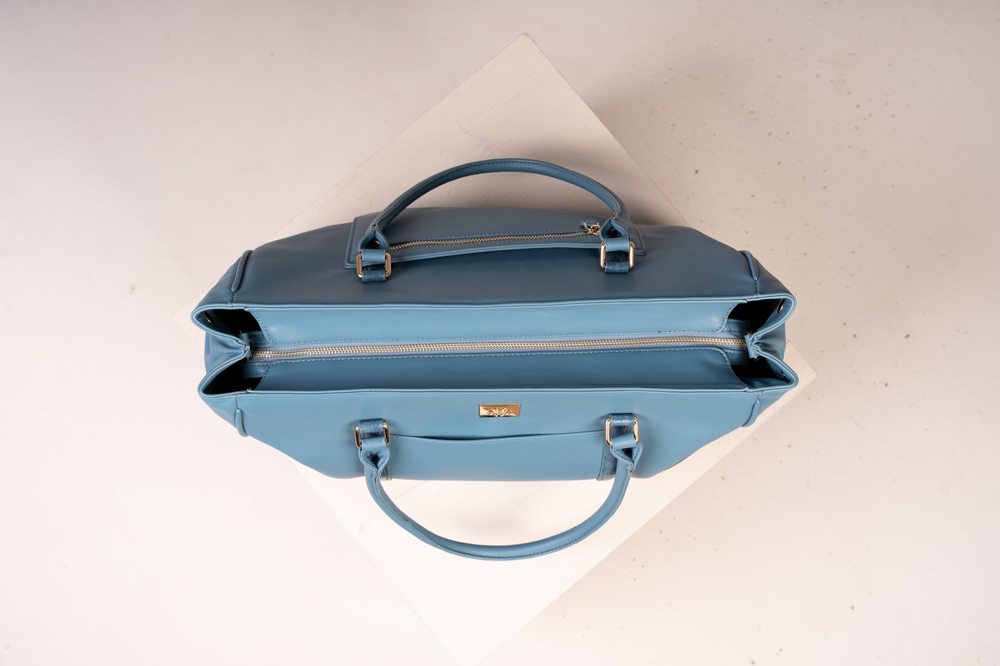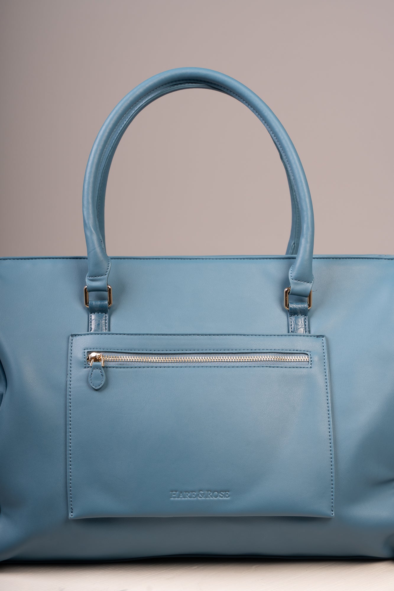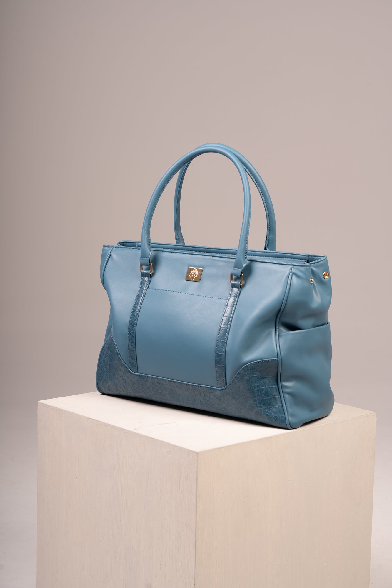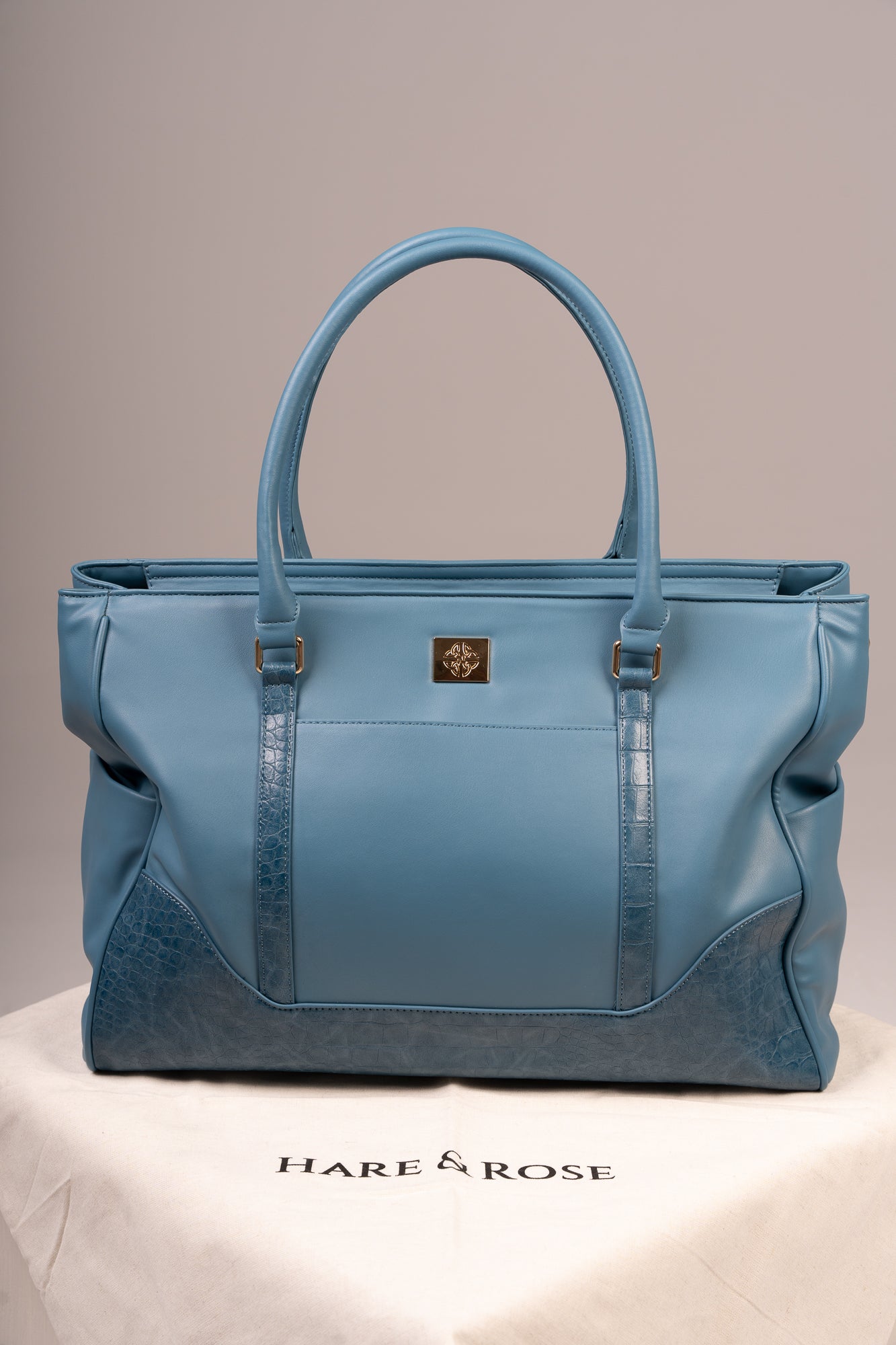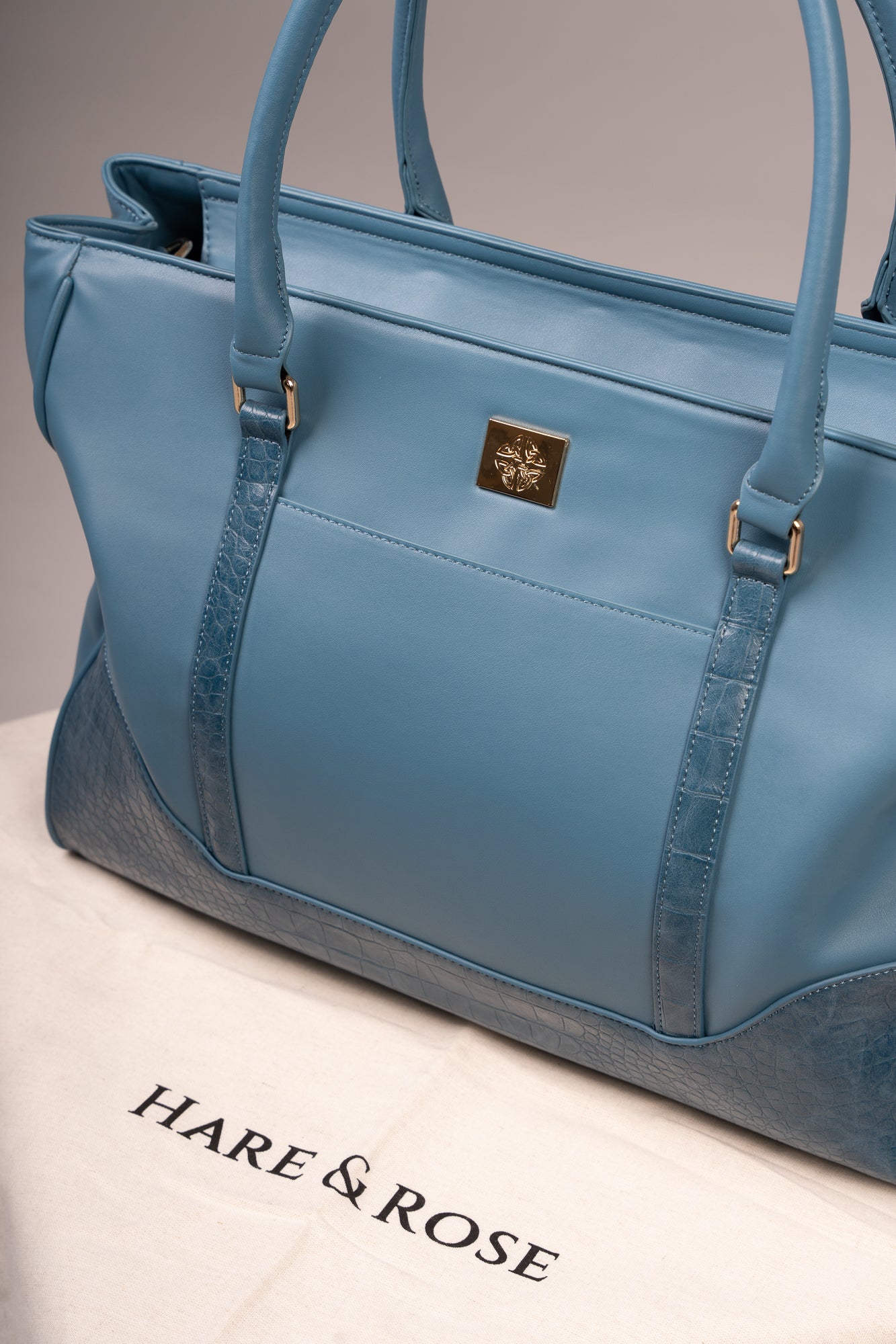 Where versatile luxury meets eco-conscious style, the Hare & Rose Elemental Blue XL Weekender Bag - Lisa is crafted from GRS Certified recycled buttery-soft Nappa vegan leather with a croc design accent.