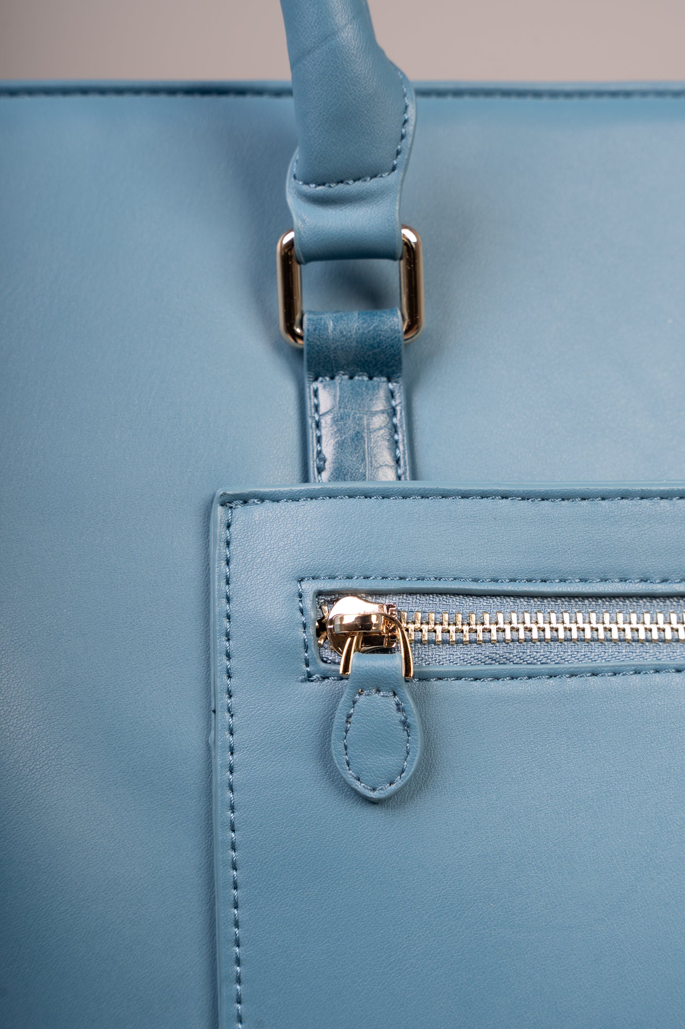 - Smooth buttery soft vegan leather exterior trimmed with croc accent